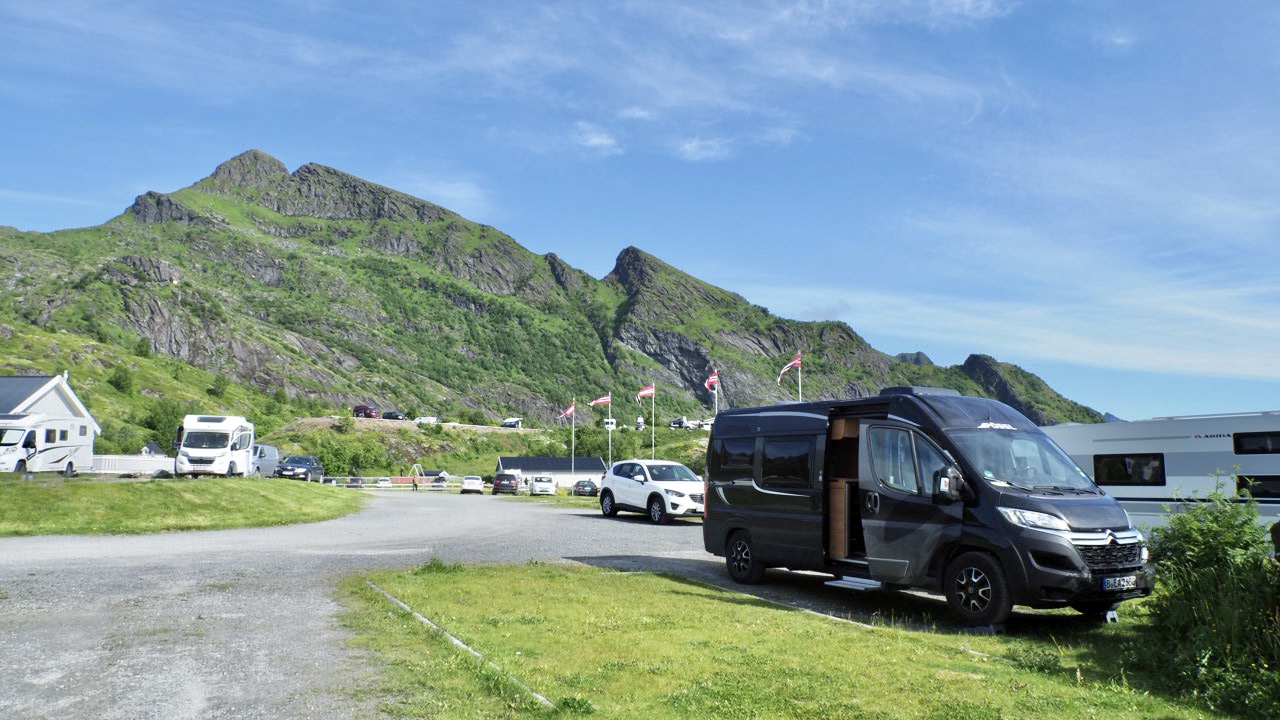 Und hier das Gegenprogramm, die letzte Nacht wollen wir in der Nähe der Vermietstation verbringen, damit wir morgen rechtzeitig dort sind. Der Shuttle zum Flughafen benötigt auch etwas Zeit und wir wollen doch nicht hetzen, wir sind ja schließlich nicht mehr die Jüngsten. Für diese Nacht zahlen wir 48 Euro, die Duschen kosten extra! Zwar haben wir am Stellplatz Wasseranschluss, Stromanschluss und einen Abwasserkanal, aber trotzdem ein stolzer Preis, wie ich finde.