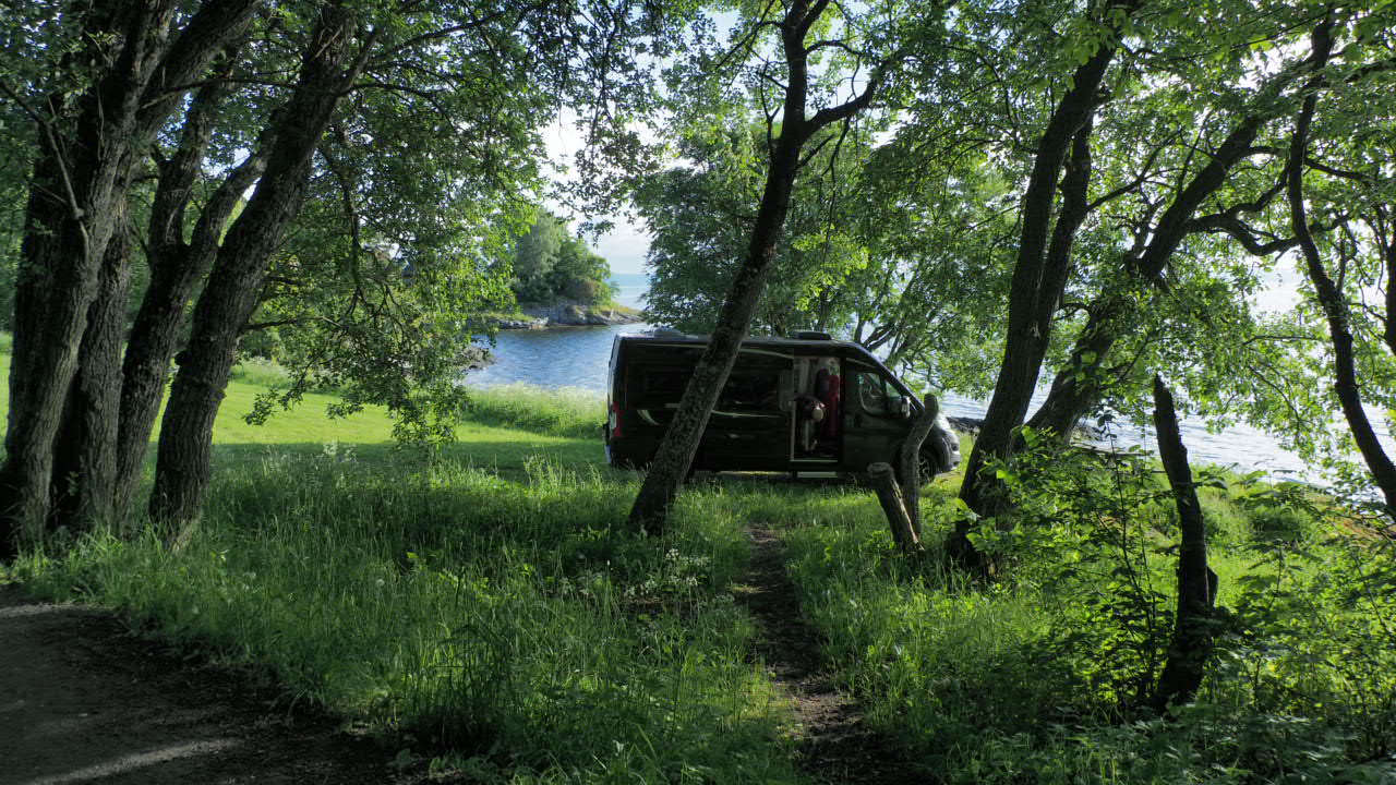 Unser Stellplatz im Wald, wir fühlen uns, als wären wir ganz allein hier.