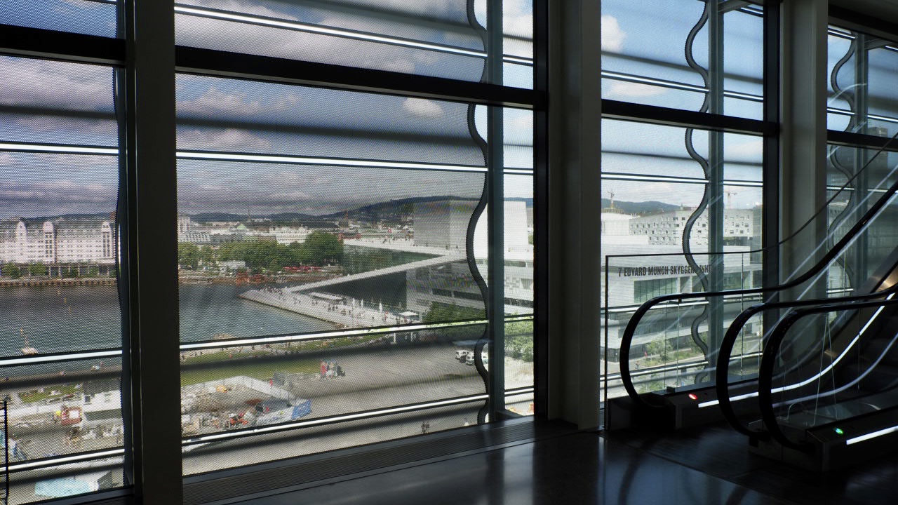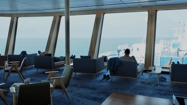 Vom Foyer aus überblickt man den ganzen See.