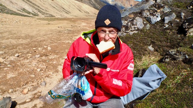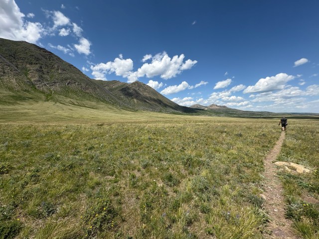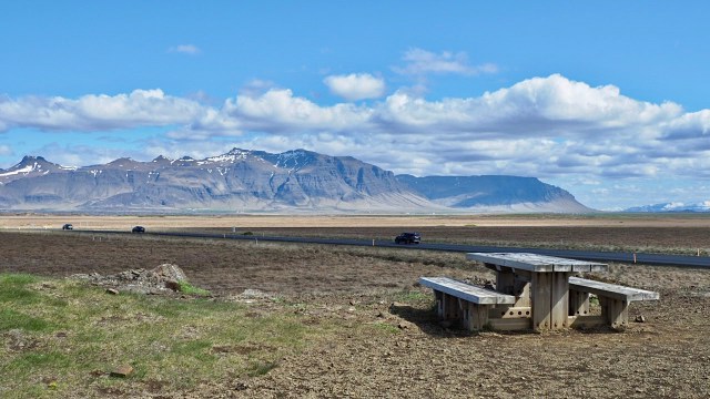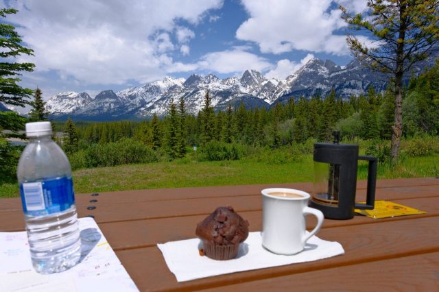 Für uns war der Nachmittagstee eine Hauptmahlzeit und wir brauchten erstmal einen Verdauungsspaziergang. Abends gab es nur noch kalt. Und mit diesem Bild möchte ich den Kanada-Blog beenden. Es zeigt den Übergang von der Prärie zu den Bergen mit dem Weg in die Unendlichkeit. Schön, dass ihr auf unserer Reise wieder dabei wart, danke für eure Kommentare und Tschüß bis zum nächsten Mal.