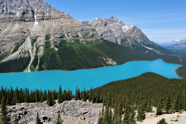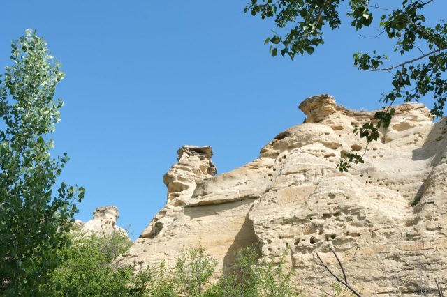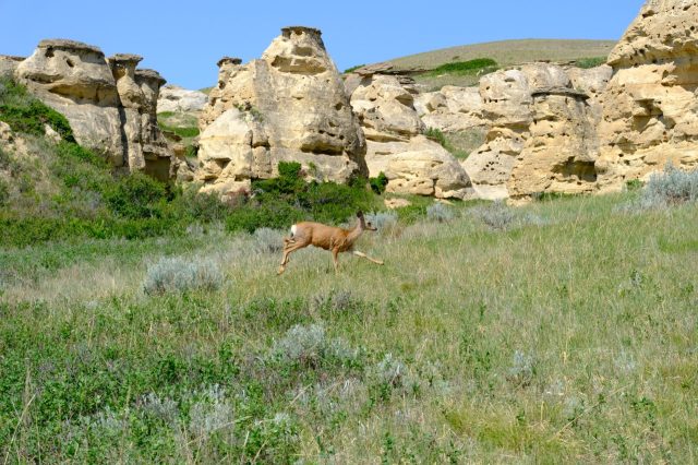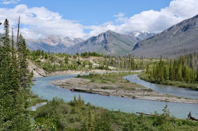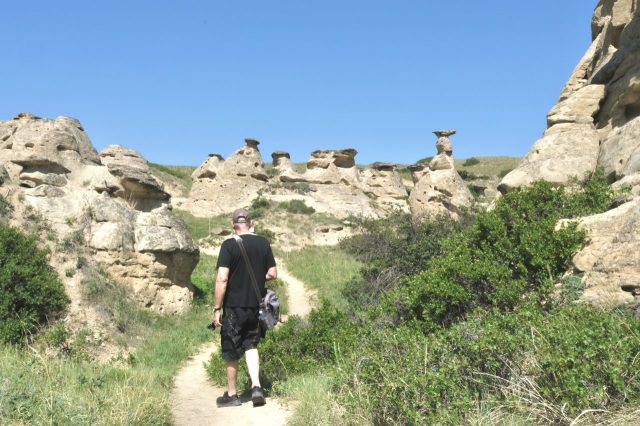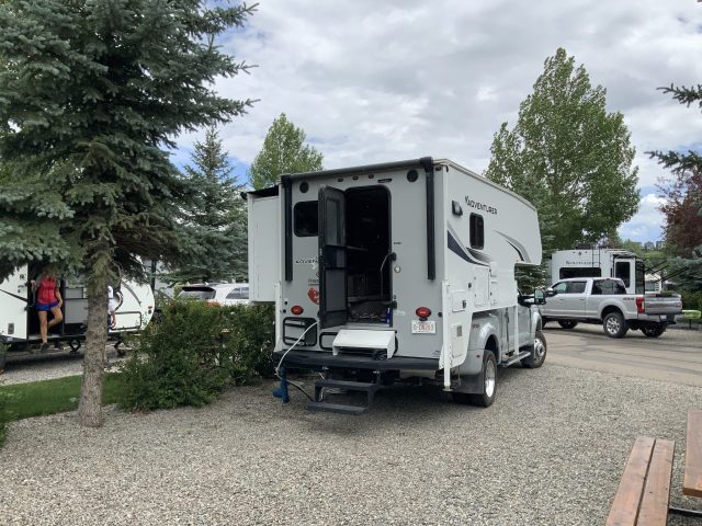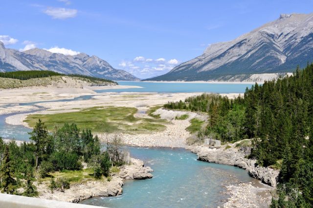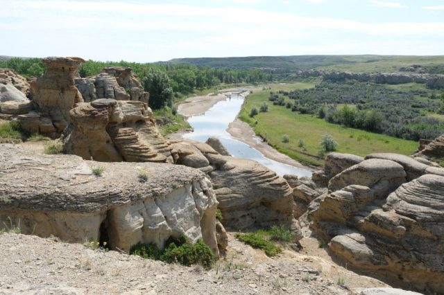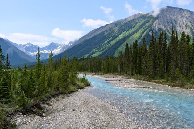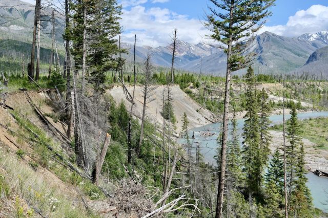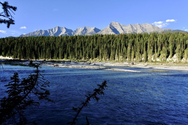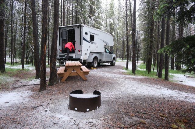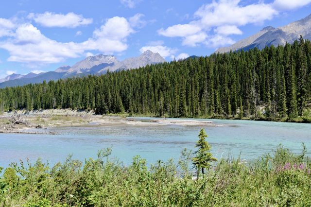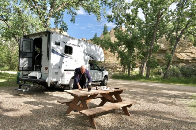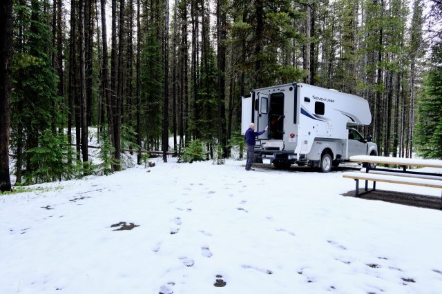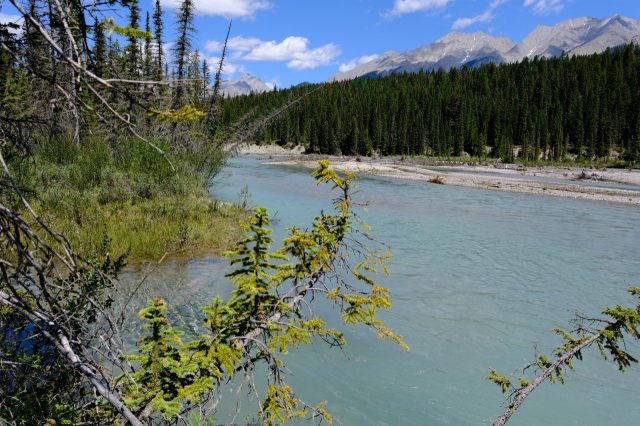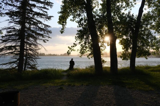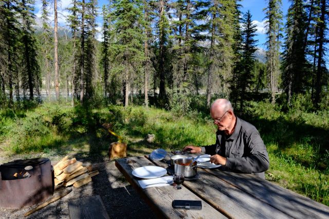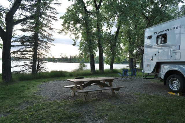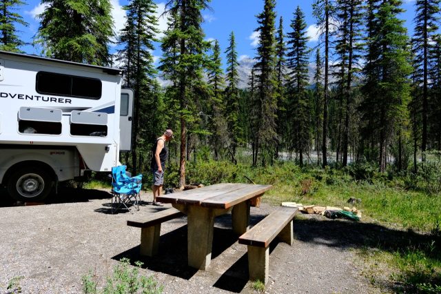 Der Plan für die beiden letzten Tage lautet: zurück nach Calgary, übermorgen geht der Flieger. Touristisch ist die Strecke weniger von Bedeutung, uns war nur wichtig, schöne Plätze in der Natur zu finden. Und das ist in diesem Land kein Problem, denn die Kanadier lieben es, zu campen. Und sie bevorzugen dabei schöne Plätze im Wald, vorzugsweise an einem Fluss oder kleinen See gelegen. Die einzelnen Provinzen unterhalten solche Naturplätze, die nur ein Minimum an Versorgung haben, also einen Stellplatz mit Picknickbank und Feuerring sowie auf dem Platz verteilt Trockentoiletten, das feinere Wort für Plumpsklo. Wenn sie richtig gut ausgestattet sind, haben sie Klos mit Wasserspülung und Duschen. Feuerholz wird meistens verkauft, in British Columbia zahlt man bereits im voraus eine Feuerpauschale und holt sich dann so viel Holz, wie man braucht. Es gibt auch kommunale Plätze, sogenannte Recreation Areas mit und ohne Camping. Früher war alles auf der Basis wer zuerst kommt, hat einen Platz, also first come, first serve. Heute kann man die Plätze im Internet reservieren, was in der Ferienzeit und am Wochenende empfehlenswert ist. Nicht nur, dass die Naturplätze viel schöner sind und großzügig angelegte Stellplätze haben, sie sind auch noch viel günstiger. Wir haben im Schnitt 25 Euro pro Nacht gezahlt, auf dem kommerziellen Plätzen ist es mehr als das Doppelte.
