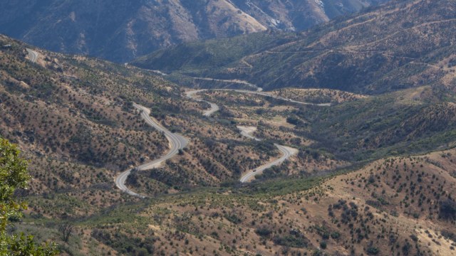 Die Anfahrt in denn Kings Canyon ist nicht ohne, aber Martin beherrscht unser 7-Meter-Wohnmobil perfekt, auch wenn die Kurven noch so eng sind.