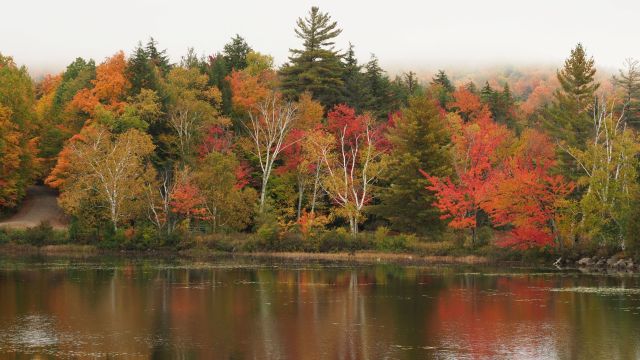 Bei unserem Abstecher in den Adirondack Park im Staate New York – jawohl, wir sind in die USA gewechselt – wollten wir noch einmal die ganze Farbenpracht des Herbstwaldes erleben. Und es gibt hier viel Mischwald, der sich auf sehr malerische Weise verfärbt hat. Aber es ist nur das halbe Vergnügen, wenn die Sonne nicht scheint. Schade, aber dadurch erleben wir einen authentischen Herbsttag mit Bewölkung und Nebel. Nicht so das langweilige Bilderbuchwetter. Bei Sonne fotografieren kann jeder.