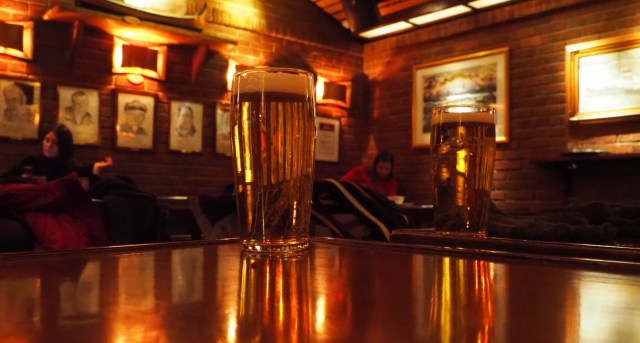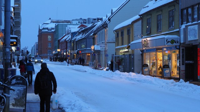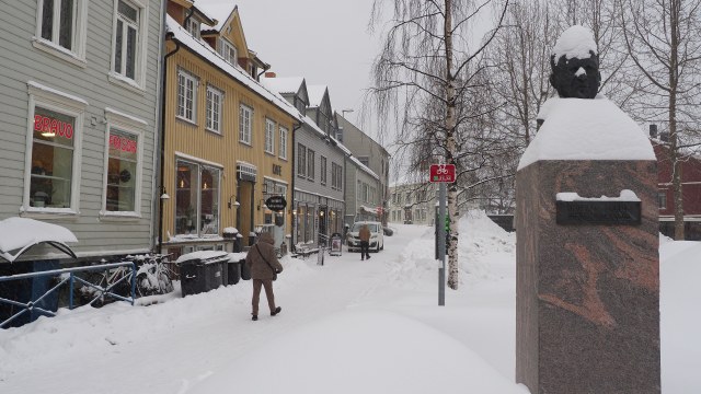 Unser heutiger Landgang führt uns nach Tromsø, manche nennen sie die Pforte zum Eismeer. Von hier aus starteten große Expeditionen in die Arktis und auch heute ist die Stadt ein Zentrum der Polarforschung. Unser Schiff steht wieder zentral im Stadtzentrum und so kämpfen wir uns durch dichtes Schneetreiben. Es geht sich ganz gut auf dem festgetretenen Schnee und da werden wir mutiger. Die berühmte Eismeerkathedrale liegt auf der anderen Seite des Sunds, verbunden durch eine dieser hohen, geschwungenen Brücken, unter denen die Schiffe durchfahren. Natürlich haben wir uns wetterfest angezogen und trotzen den Unbilden des Wetters. Zur Belohnung gibt es ein Bierchen in Macks Ølhallen. Eine traditionsreiche Brauerei, also so etwas wie das Hofbräuhaus von Tromsø. Habt ihr übrigens gemerkt, dass ich jetzt auch dieses komische ö auf der Tastatur gefunden habe?