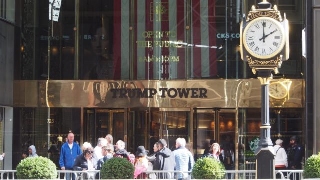 Die Skyline von Manhattan im ersten Morgenlicht, die Gruppe am Eck sind die Teilnehmer der Gruppenreise, die von der Wochenzeitung „DIE ZEIT“ organisiert wurde. Das hatte für uns den Vorteil, dass wir deutschsprachige Vorträge von Zeit-Journalisten anhören konnten.
