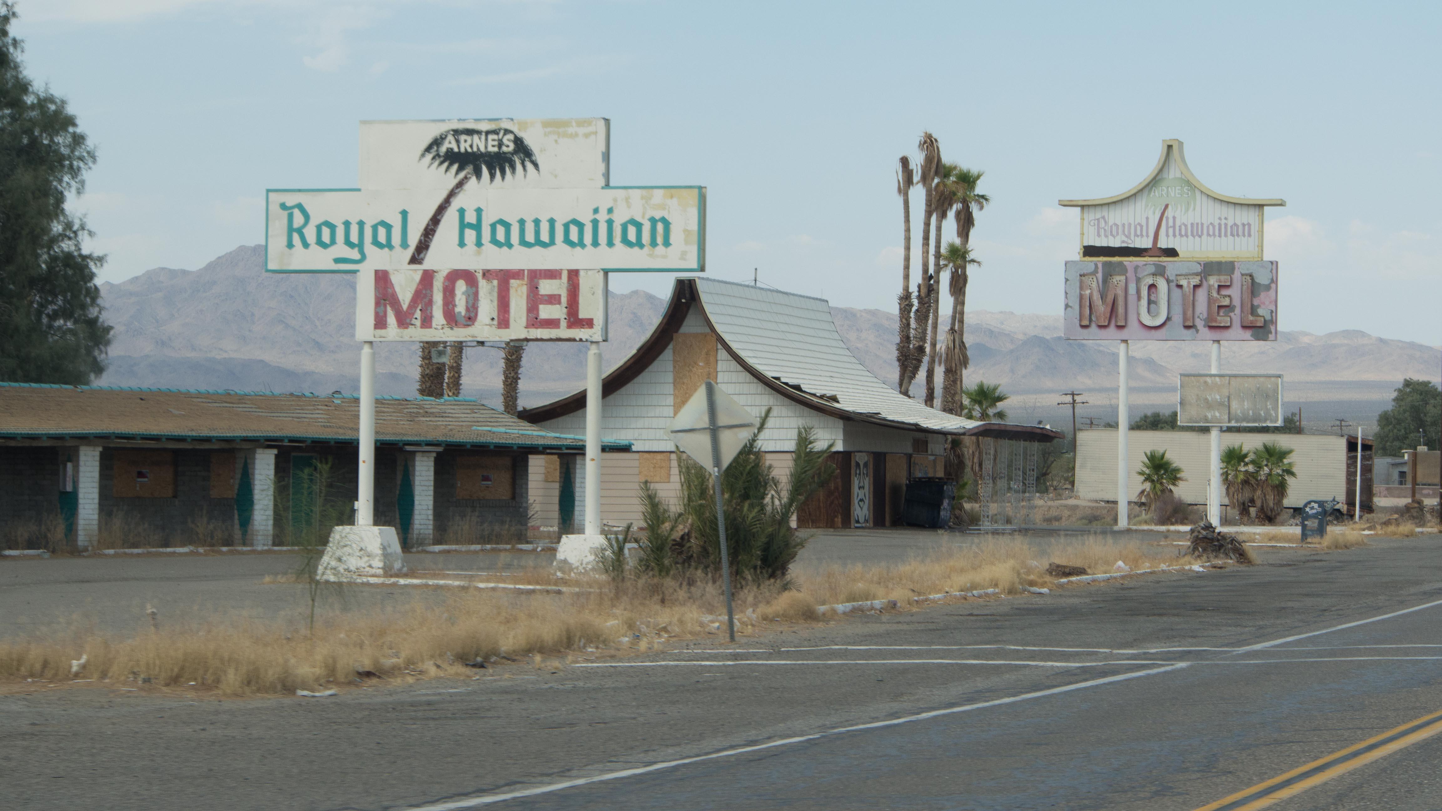 Was man unterwegs auch oft beobachten kann, ist eine gewisse Landflucht. Es gibt Ortschaften, die wirklich 100 Kilometer vom nächsten Supermarkt entfernt sind. Es gab früher überall Einzelhandel, aber Walmart und Co. haben diesen wohl verdrängt. Auch die charmanten Motels gibt es nur noch selten, sind heutzutage auch alles Ketten wie Travelodge oder Best Western. Übrigens finde ich den Namen Royal Hawaiian auch sehr gewagt, für ein staubiges Nest mitten in der Wüste.